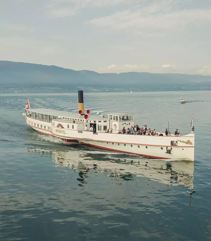 Das D/s Neuchâtel ist 1912 gebaut worden. Es fuhr bis 1969, dann wurde es zu einem Schiffsrestaurant im Hafen von Neuchâtel. Zum Verkauf ausgeschrieben wurde es von der Assoziation Trivapor im Februar 2007 gekauft. Es wurde während 3 Jahren renoviert und ging am 14. August 2013 wieder auf See. Es fährt für unsere Schifffahrtsgesellschaft seit 2014. Es ist das letzte Dampfschiff von dieser kleinen Dimension. Es hat einen Heizkessel von einer Kapazität von 330 CV à ~40 Touren/Minute. Es hat eine Länge von 48,60 Meter und eine Breite von 11,20 Meter. Sein Leergewicht beträgt 163 Tonnen und seine Tragkraft sind 29 Tonnen. Seine Mannschaft beträgt minimum 5 Personen. Dieses Schiff hat 300 Plätze, davon 90 für ein Restaurant (aufgeteilt in 2 Salons).
