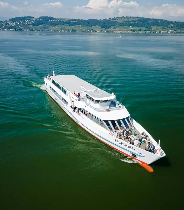 Das M/s Fribourg ist 1995 gebaut worden. Es besitzt zwei Dieselmotoren MAN von 600 CV à 2100Touren/Minute jeder. Es hat eine Länge von 53,3 Meter und eine Breite von 9 Meter. Es hat eine Tragkraft von 45 Tonnen und es braucht eine Mannschaft von minimum 3 Personen. Dieses Schiff hat 560 Plätze, davon 250 für ein Restaurant (auf dem unteren und oberen Deck verteilt). Es hat zusätzlich einen kleinen Salon vorne für 30 Personen.